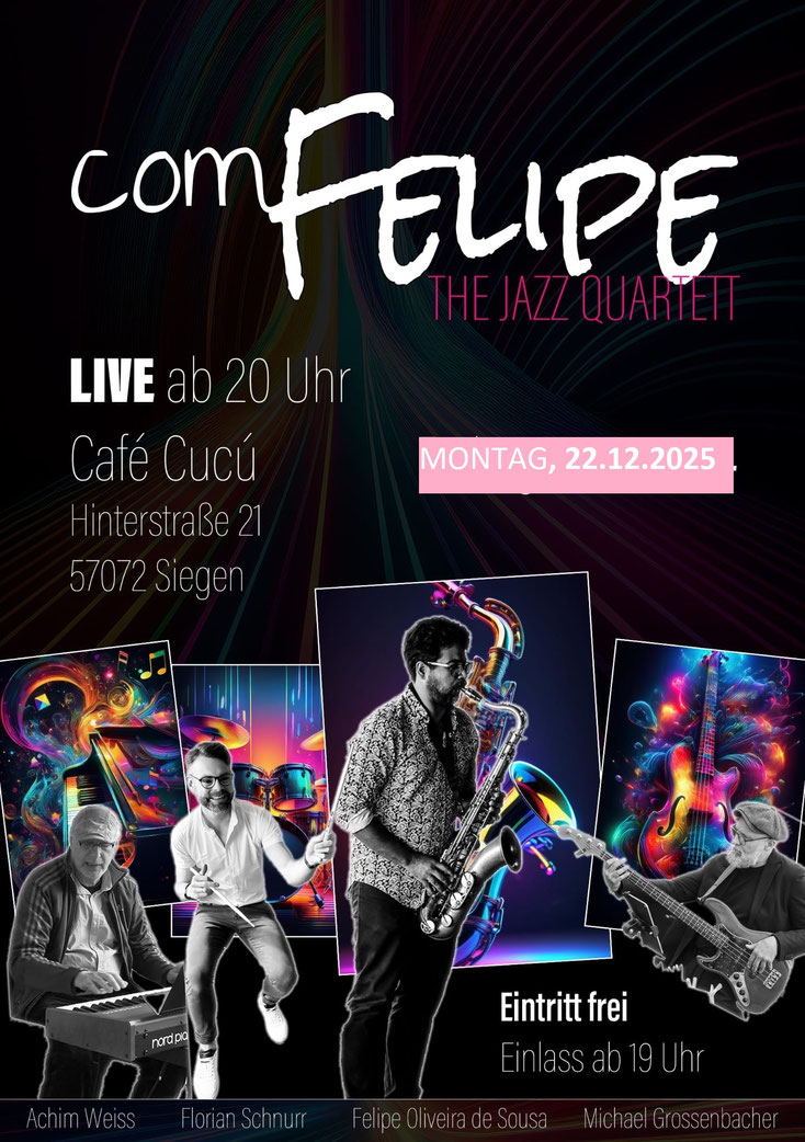 Der Siegener Gitarrist Dominik Jung studierte an der Hochschule für Musik Köln das Fach Konzertgitarre und schloss seine Studien mit dem „Konzertexamen“ ab. Schon während seines Studiums gewann er Preise bei den internationalen Musikwettbewerben in Luxembourg, Weikersheim und Tokyo. Er unterrichtet als Dozent für Gitarre an der Fritz-Busch-Musikschule der Stadt Siegen und an der Universität Siegen. Für den Abend im Cucú hat er ein Programm aus Pop/Rockarrangements, spanischer und südamerikanischer Musik zusammengestellt.