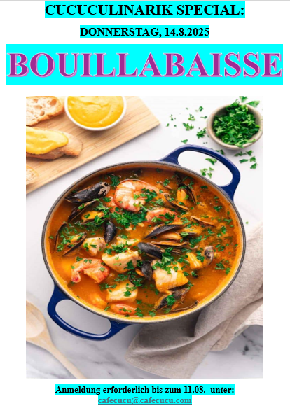 schriftl. Anmeldung erforderlich bis zum 23.5. unter: cafecucu@cafecucu.com